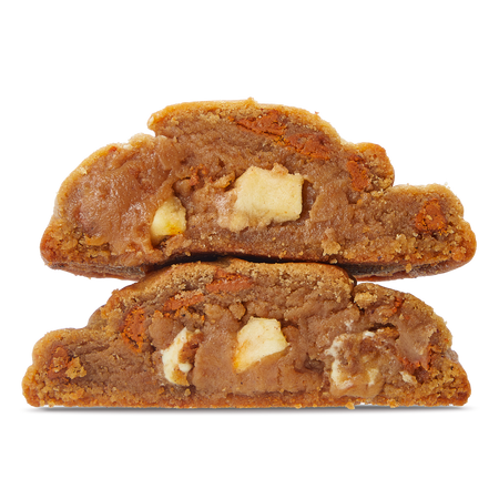 Our signature vanilla brown butter cookie infused with pumpkin and fall spices, swirled with single-origin white chocolate, stuffed with Madagascar vanilla bean infused cream cheese frosting, and topped with our buttery gingersnap shortbread