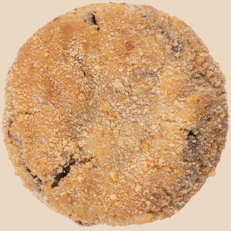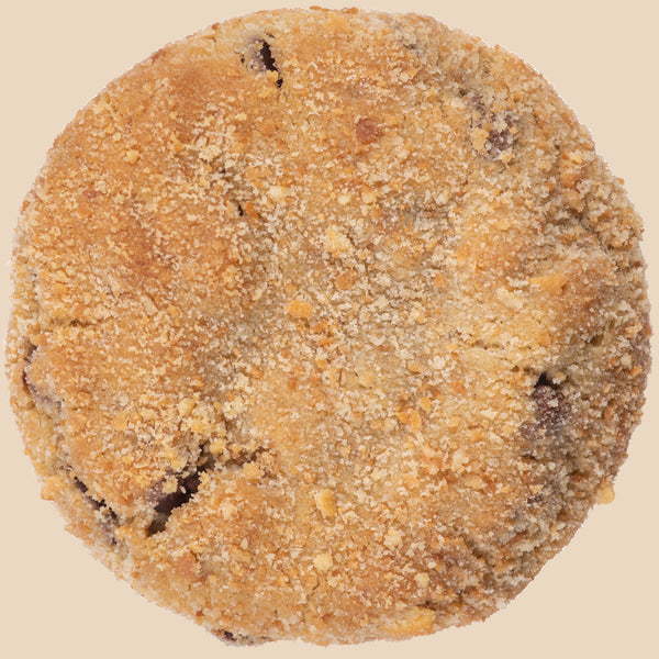 Vanilla brown butter cookie mixed with single-origin milk chocolate chips and chunks, stuffed with a crunchy cornflake homemade Nutella filling, and topped with flaky Maldon Sea Salt